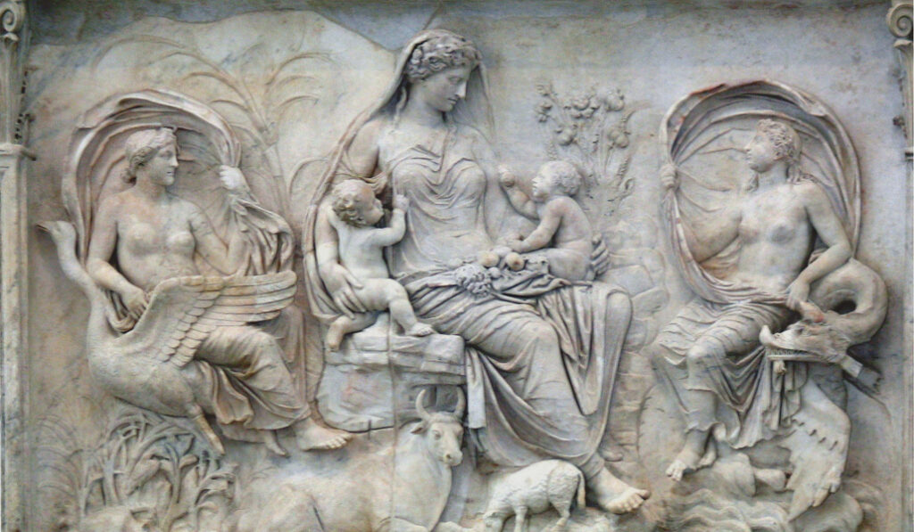 Detalle del Ara Pacis (Altar de la Paz), en Roma. Monumento (años 13 al 9 a. C.) por la paz que llegó con el emperador Augusto.