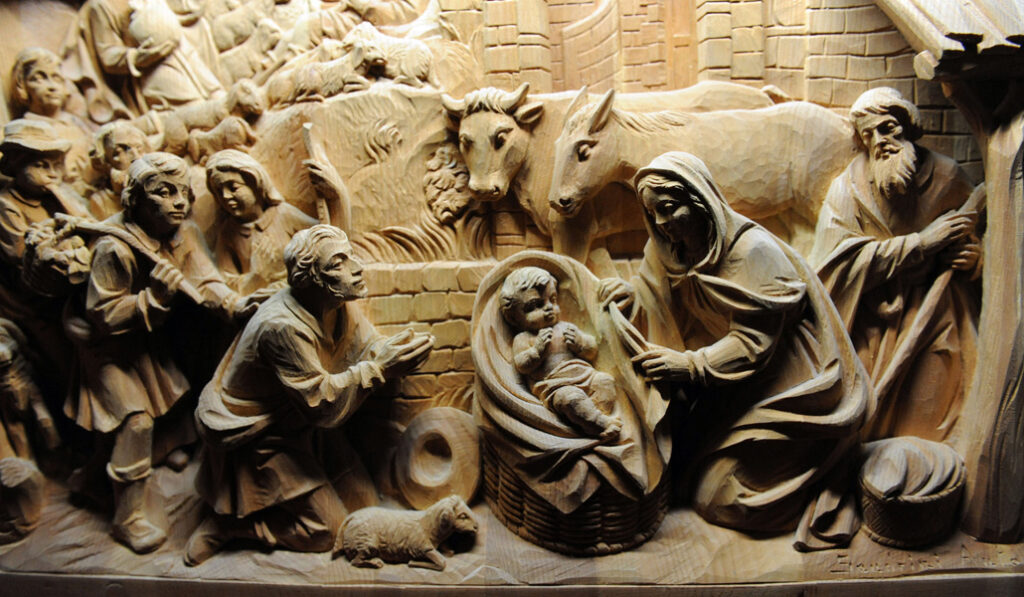 Bajorrelieve de un belén de madera, de Antonio Sandrini. Museo Internacional de la Natividad, Belén (procede de la Lombardía).