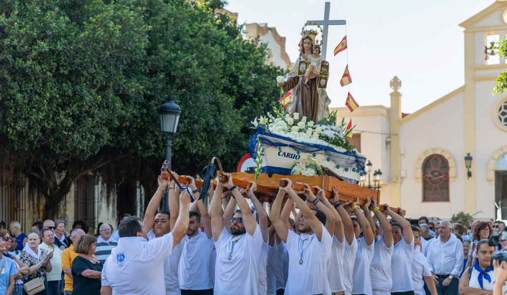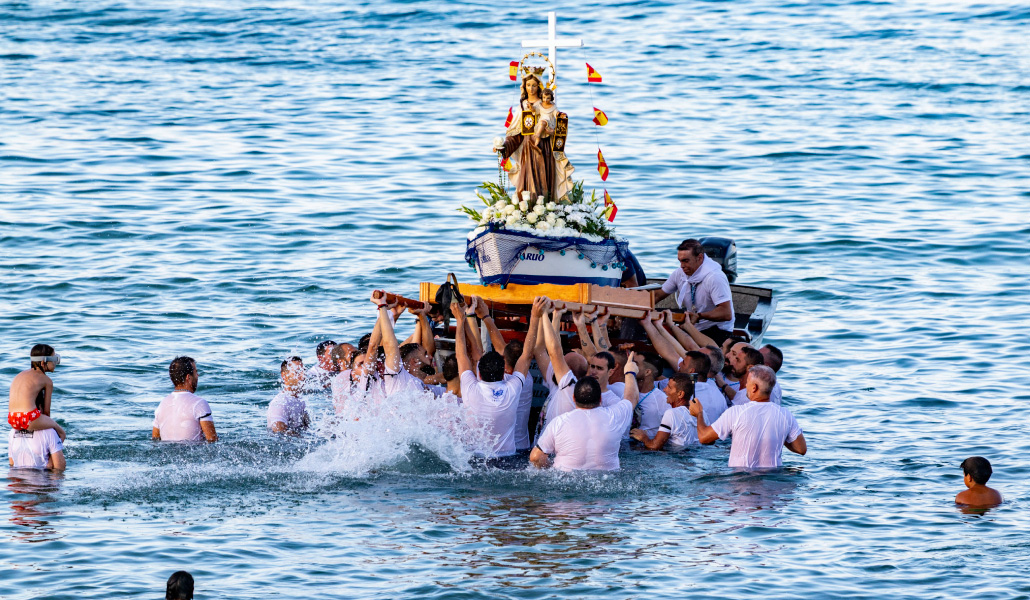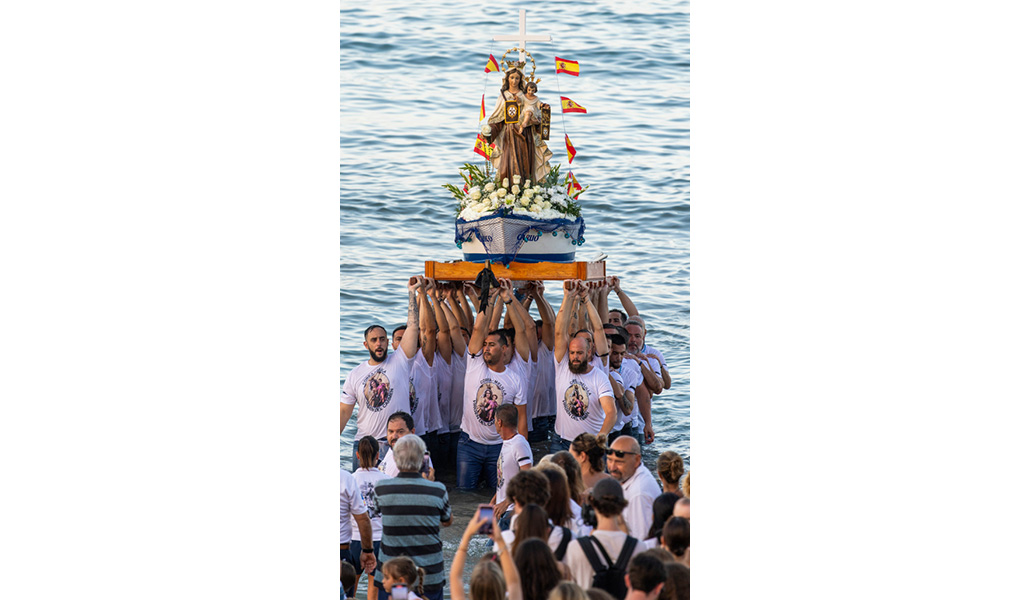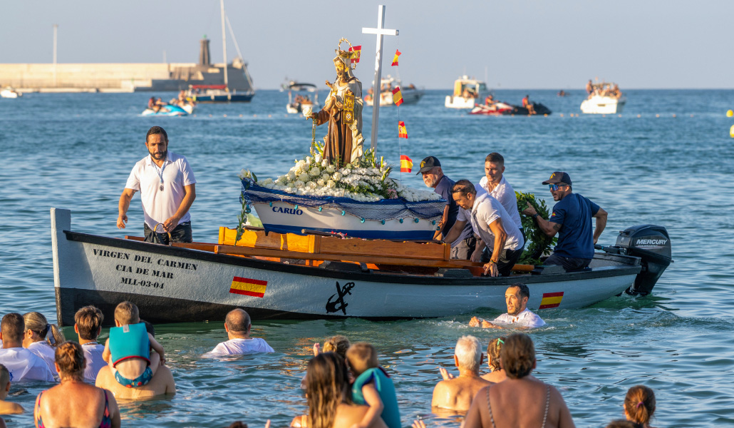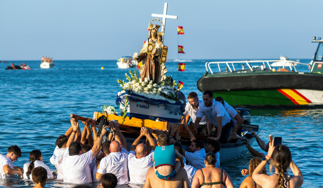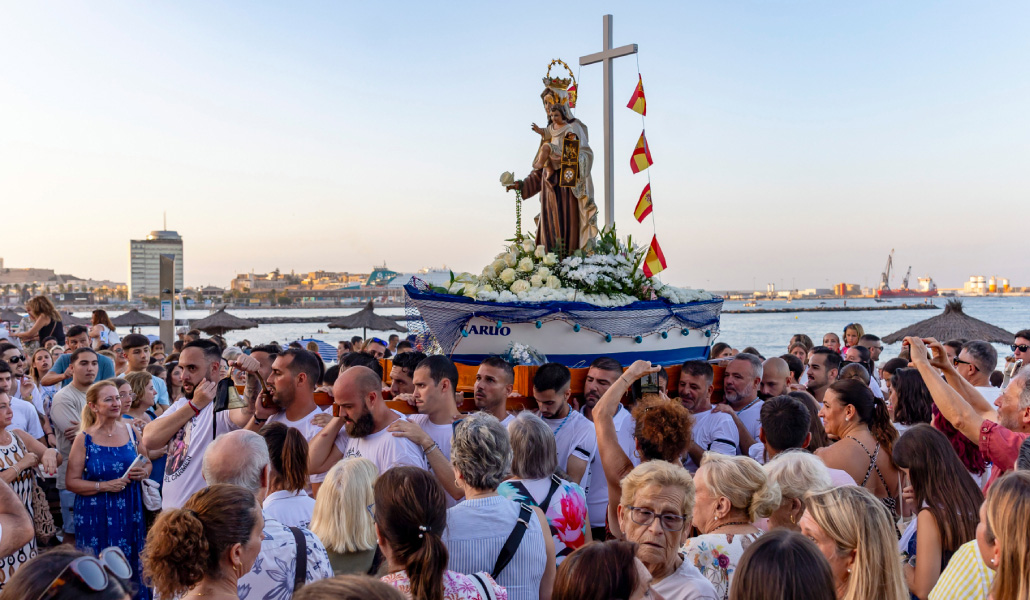 La imagen fue llevada a hombros por 50 anderos que no tuvieron reparos en meterse en el mar para honrar a la patrona de los marineros