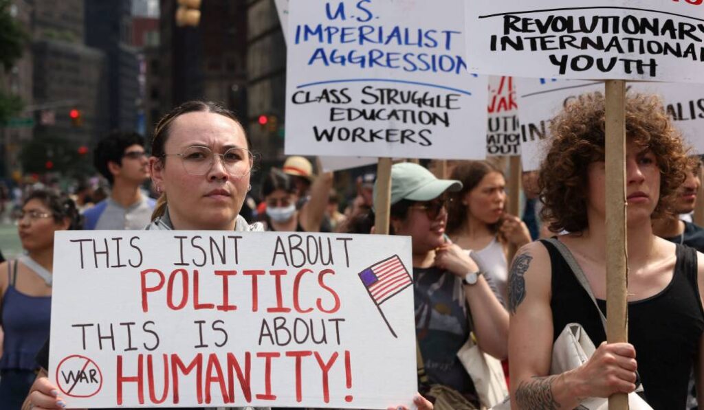 Manifestantes en Nueva York contra el ataque de junio de 2025. Foto: OSV News/Caitlin Ochs, Reuters