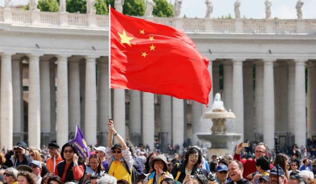 Una bandera china en la Plaza de San Pedro. Foto: OSV News