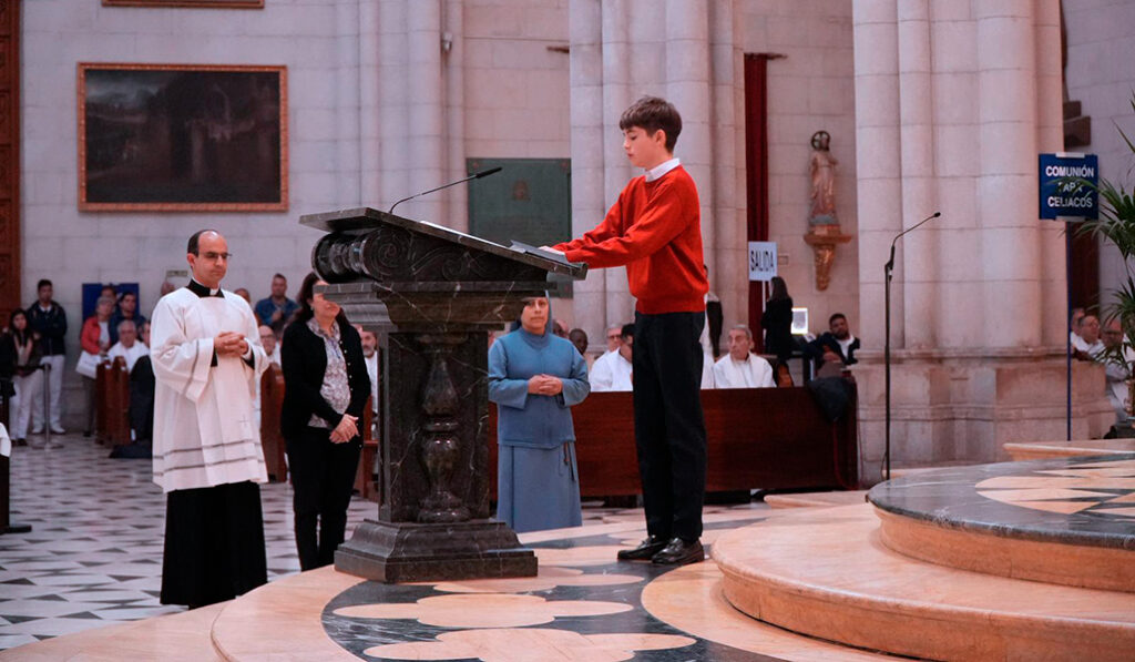 La Escolanía del Escorial, que ha acompañado musicalmente la celebración, entonaba, entre otros, el Kyrie de la Misa de Angelis, al que seguía el Gloria, rompiendo con la austeridad cuaresmal al ser esta una celebración de máxima solemnidad.