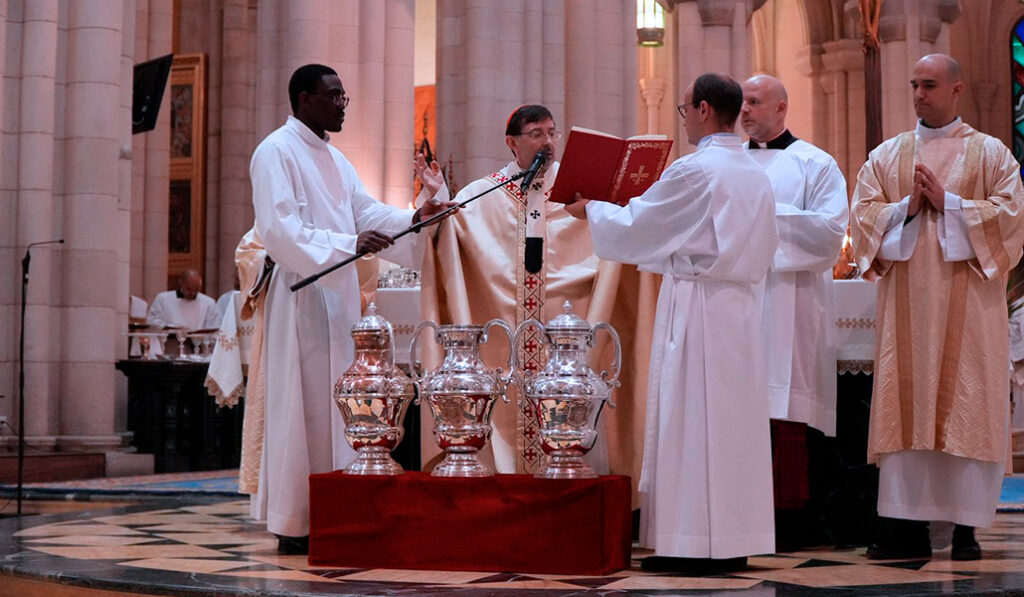 Durante la Eucaristía, el arzobispo ha bendecido el óleo de los enfermos, para que con este aceite «sientan en el cuerpo y en el alma» la «divina protección» de Dios y «experimenten alivio en sus enfermedades y dolores». También el óleo de los catecúmenos pidiendo para ellos, tal y como indica la liturgia, «aumentar la valentía en el combate de la fe» y vivir «más hondamente el Evangelio de Cristo».