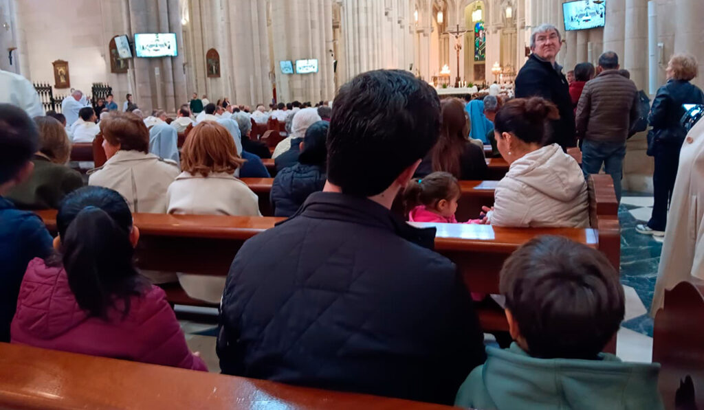 De la parroquia Santa María del Buen Aire asistían también varios feligreses, entre ellos Jorge y Yulisa y sus hijos Jared, de 6 años, y Teah, de 2. El mayor nos contaba que quería ser monaguillo «desde hace mucho tiempo», y lleva ya un mes sirviendo en la parroquia. «Lo que mejor se me da es tocar las campanas», dice con orgullo.