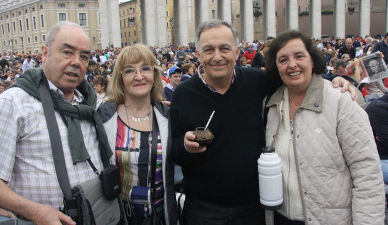 A los peregrinos argentinos que llegaron a Roma era fácil reconocerlos por sus banderas albicelestes y su mate en la mano, orgullosos de ser compatriotas del Papa. Irene Angeli y José Manuel Ferreiro, de Mendoza, pisaban por primera vez Europa, junto a otros matrimonios del movimiento Hogares Nuevos, «pero no para ver al Papa, sino para estar y adorar a Cristo. Al Papa lo queremos muchísimo, lo amamos, lo escuchamos, estamos orgullosos de él y atendemos a su llamada, pero aquí venimos, antes que nada, para que Cristo nos empuje a vivir nuestra vocación, dentro de la Iglesia». Como explica Irene, «el carisma de nuestro movimiento es descubrir y profundizar en nuestra vocación como matrimonio y como familia, y propiciar un encuentro con el Señor. Pero no de forma individual, sino un encuentro con el Cristo conyugal, con Jesús que nos une, que está entre nosotros, que sostiene y fortalece al matrimonio y, por tanto, a los hijos». José Manuel añade que, «en cada matrimonio cristiano, no somos dos, ¡somos tres! Es Él quien está con nosotros. Si me enfado con mi mujer, mi pecado no hace que ella se quede sola y yo solo, sino que Cristo se queda con cada uno y nos lleva a reconciliarnos». Y concluye Irene: «Nosotros hicimos un Cursillo de Cristiandad hace años, y allí tuvimos un encuentro personal con Cristo, que fue fundamental. El encuentro personal con el Señor es la base de la vida cristiana, pero Él se va entregando también en el matrimonio, y ya la fe no se vive aislada, sino en familia y de forma conyugal. Es así, desde Él, como nacen hogares nuevos, y ésos son los que cambian el mundo».