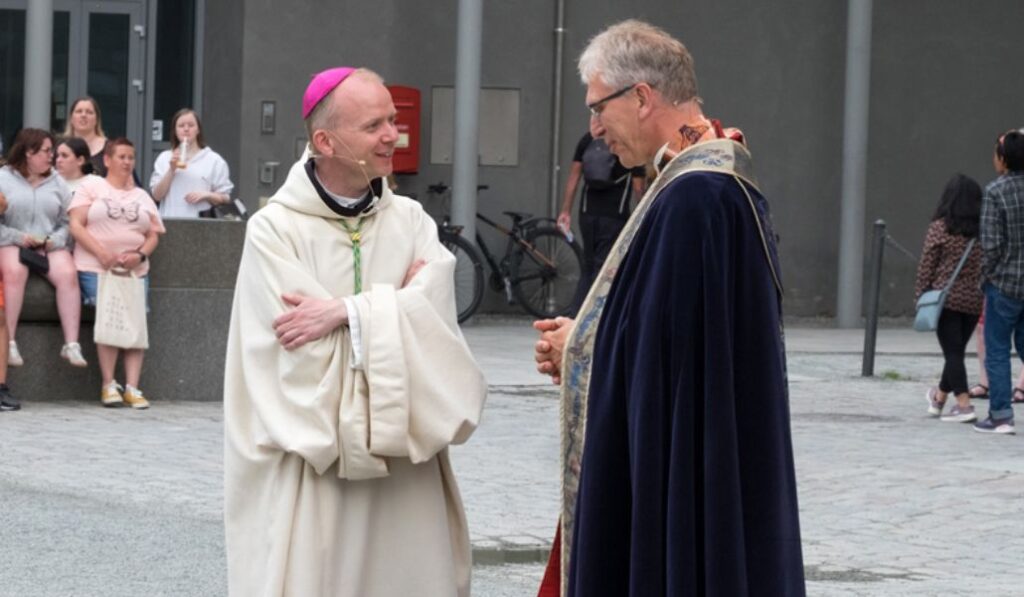 Varden (izquierda) conversa con su homólogo luterano en la fiesta de san Olaf. Foto: Jan Erik Kofoed.