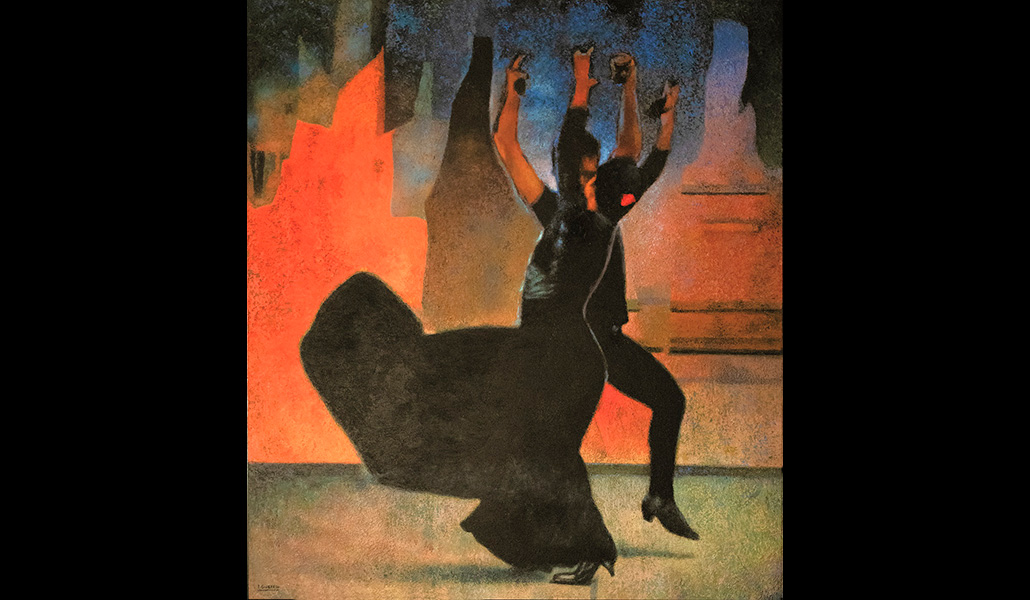 Su sentido de búsqueda no se repliega exclusivamente a sus temas, con ser fundamental en ellos. Su apuesta por la experimentación también la hallamos en la técnica. En sus últimas creaciones admiramos unas composiciones plenas de texturas, de sugerentes relieves combinados con un cromatismo no ajeno a ciertas resonancias abstractas, las cuales otorgan mayor fuerza y atractivo a unas imágenes que se ocupan y preocupan por nuestro aquí y por nuestro ahora. Vislumbramos así, en cierto modo, la vida contemplativa de esta pintora, esa contemplación, esa oración, que siempre va por delante del mundo, que está en el mundo y dialoga con él. No es por ello sorprendente que en esta exposición también se incluyan guiños a la actividad deportiva o al baile flamenco. Y, por supuesto, el homenaje a sus maestros, representado en este caso gracias a una peculiar recreación del Invierno de Goya, recuerdo de aquellos días que, de la mano de sus padres, Isabel Guerra visitaba el Museo del Prado, alimentando desde muy pronto su vocación por la pintura, casi pareja a la religiosa. Vocaciones ambas que son una a la hora de invitarnos a mirar siempre, desde el fluir del tiempo, a quien es la belleza, la verdad y el bien.