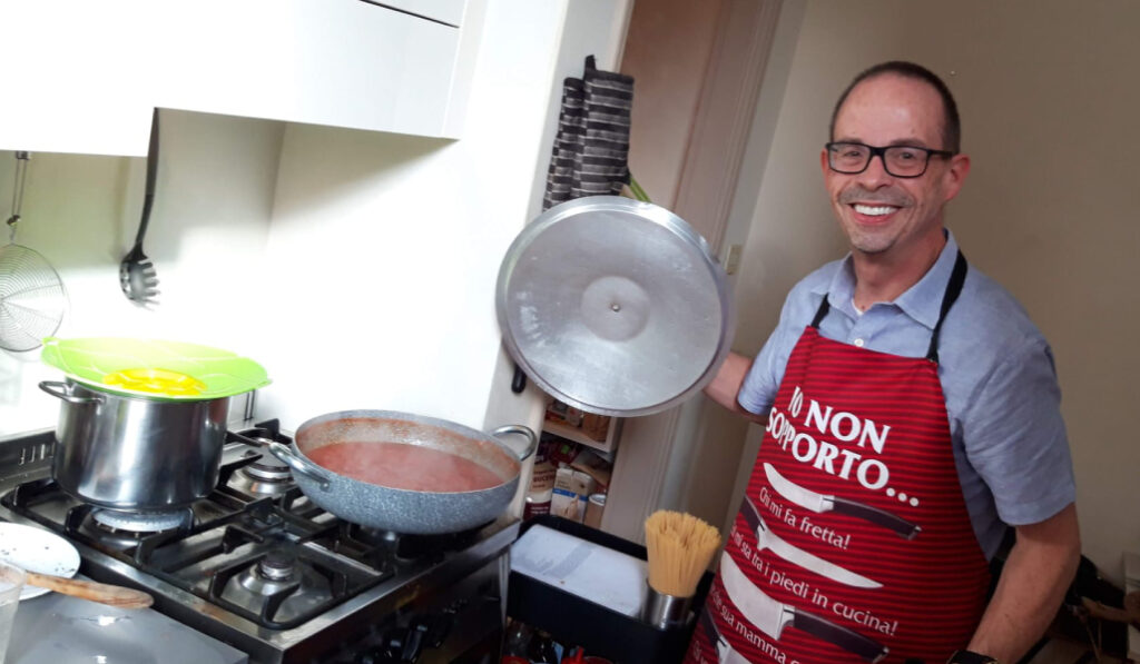 Cuando hace unos días fui a despedirme por penúltima vez, le llevé uno de sus amados tiramisú, que ya no pudo tomar por las dificultades para deglutir; al menos lo pudo disfrutar su querida Elise. «Thanks, my friend», decía, mientras hacía el gesto de no poder. Los volverá a tomar en el paraíso (donde estoy seguro de que ya habrá recibido el abrazo del Padre y de sus padres: se había preparado bien para ello). Tiramisú y su famoso licor de hierbas Canaja, que compartía con tanta generosidad con sus muchos amigos en la terraza de su casa romana.