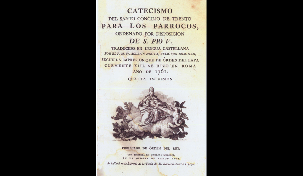Comienza la exposición con una invitación a contemplar la belleza del mundo creado a través de los óleos de Eugenio Lobo. En el Paisaje de mieses doradas (1981), su autor plasma minuciosamente el reflejo del sol en cada una de las espigas. A lo largo del magnífico Catálogo realizado por don Manuel Jesús Carrasco Terriza, Comisario de la exposición, van desfilando aquellos personajes que han sido nuestros padres en la fe, como María y san José, los primeros que creyeron en el anuncio del ángel. Vemos su representación en la escultura de San José con el Niño, de la iglesia parroquial de Trigueros, de escuela sevillana, fechada en 1760, y en la imagen de la Madre del Amor Hermoso, del último tercio del siglo XVI. Sabemos que el camino de la fe comienza con el Bautismo, razón suficiente para contemplar una piedra bautismal de barro vidriado de Almonte, en la que se aprecian las figuras de san Juan y de la Virgen, acompañadas por caballitos de mar. Como fruto de la preocupación pastoral para ayudar a crecer en el camino de la fe, el Concilio de Trento (1545-1563) compuso el Catecismo de san Pío V o Catecismo para los párrocos, del que la muestra expone una impresión de 1761.