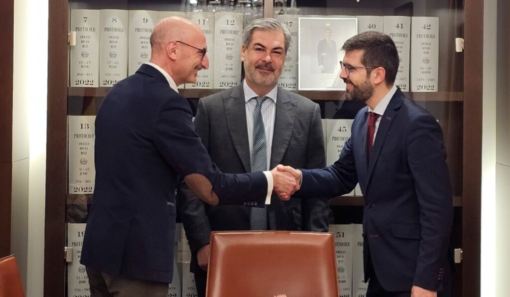 Jesús Avezuela (presidente de la Fundación Pablo VI) y José María Albalad (delegado de Economía de la archidiócesis de Madrid) en la firma del acuerdo. Foto: Fundación Pablo VI