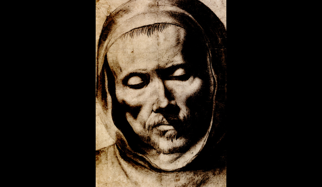 La muestra recibe al visitante con la impactante Cabeza de monje (1635-55), atribuida a Francisco de Zurbarán, un pintor célebre, sobre todo, por sus lienzos de santos y monjes envueltos por una luz que acentúa su espiritualidad. Este clima meditativo se hace también evidente en el dibujo, cuyo juego de luces y sombras (realizadas con los dedos) aporta un realismo casi escultórico. Los ejemplos más tempranos de la muestra corresponden a artistas del siglo XVI que trabajaron en Castilla, como Alonso Berruguete, muy influido por Miguel Ángel, tras su paso por Italia. De él contemplamos un dibujo a pluma de La Asunción de la Virgen (c. 1551-61), en cuyos trazos se observa la serenidad característica del estilo maduro el artista, y que probablemente sirvió para que sus pupilos pudieran copiarlo en el taller. Cuando Felipe III ascendió al trono, la nueva generación de artistas se vio moldeada por el contacto con los maestros italianos que habían trabajado en El Escorial. Lo comprobamos en La Circuncisión (ca. 1600-15), de Eugenio Cajés, pintura a pluma y aguada, inspirada en una estampa de Hendrick Goltzius dedicada a la vida de la Virgen.