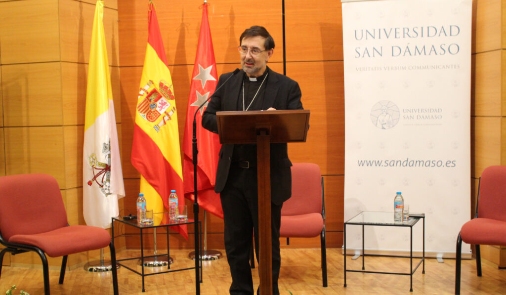 Tras el coloquio, el cardenal José Cobo, arzobispo de Madrid y gran canciller de la Universidad Eclesiástica San Dámaso, ha tomado la palabra para decir que «cuando iniciamos proyectos necesitamos cómplices». Ha agradecido a los asistentes haberse acercado a la universidad y «conocer este proyecto a través del encuentro».