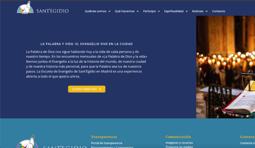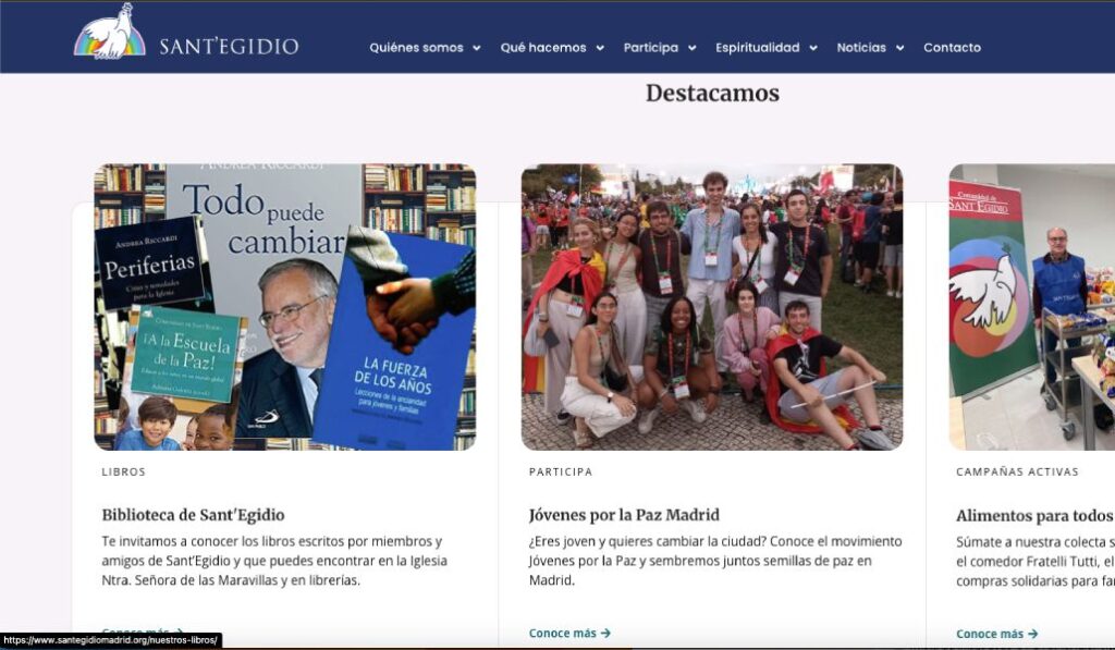 «En un momento en que estamos plagados de malas noticias, la nueva página web de la Comunidad de Sant’Egidio quiere ser precisamente una nueva noticia», considera Campos. Añade que esta buena noticia consiste en que «en Madrid se puede escuchar y vivir el Evangelio al lado de las personas sin hogar, los migrantes, los niños y los ancianos». Y, además, que «existe un lugar donde la palabra se transforma en servicio a los demás y que se encarna en nuestra propias vidas y en las de la ciudad».