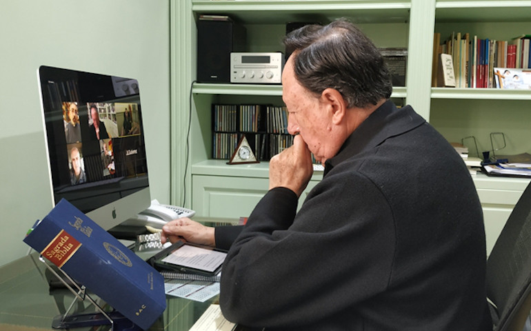A Juan del Río, arzobispo castrense, le faltan horas cada día para completar todas las tareas. No para entre llamada y videollamada. Durante estas semanas ha querido estar muy cerca de sus sacerdotes: les ha llamado a todos personalmente y luego ha organizado videollamadas por demarcaciones. En su agenda ya está marcado un encuentro virtual con todo el presbiterio castrense para celebrar la fiesta de san Juan de Ávila, patrón del clero español. Será el 11 de mayo y tendrá incluso una meditación.