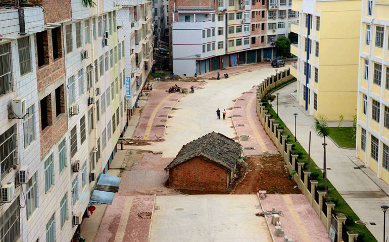 En 2007 se aprobó la primera Ley de Propiedad en China que reconocía la propiedad privada. A ella se aferran estos ciudadanos para permanecer en sus casas o, por lo menos, para intentar obtener un buen precio por ellas.