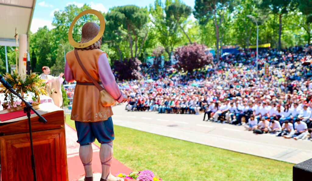 Una vez más, el pueblo de Madrid se reúne en esta pradera que lleva el nombre de su patrono. No importa de dónde vengamos ni cómo nos sintamos: todos somos acogidos por este vecino nuestro, este santo campesino que comprendió profundamente lo que significa estar unido a Cristo y a los hermanos. Hoy nos dice a todos nosotros, en el corazón de la ciudad, que tenemos sentido, que la vida tiene sentido, que los desvelos tienen sentido, que nuestras heridas tienen sentido, y que es posible dar a todo eso luz por complicado que sea.